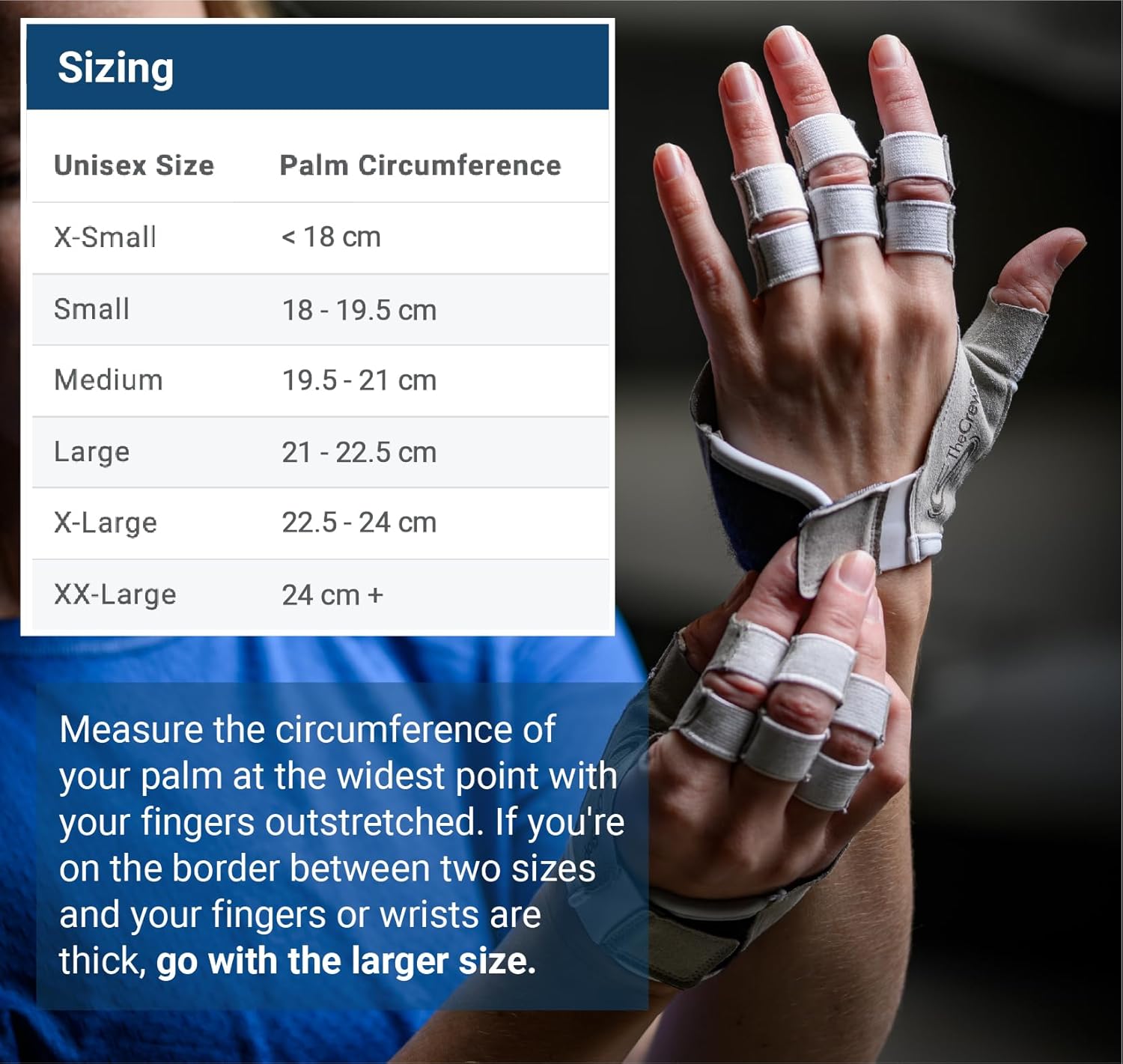 Rowing gloves for sculling, sweep rowing, indoor rowing, and paddling watersports to improve grip and prevent blisters. For sizing, measure the circumference of your palm at the widest point with your fingers outstretched. If you're on the border between two sizes and your fingers or wrists are thick, go with the larger size.